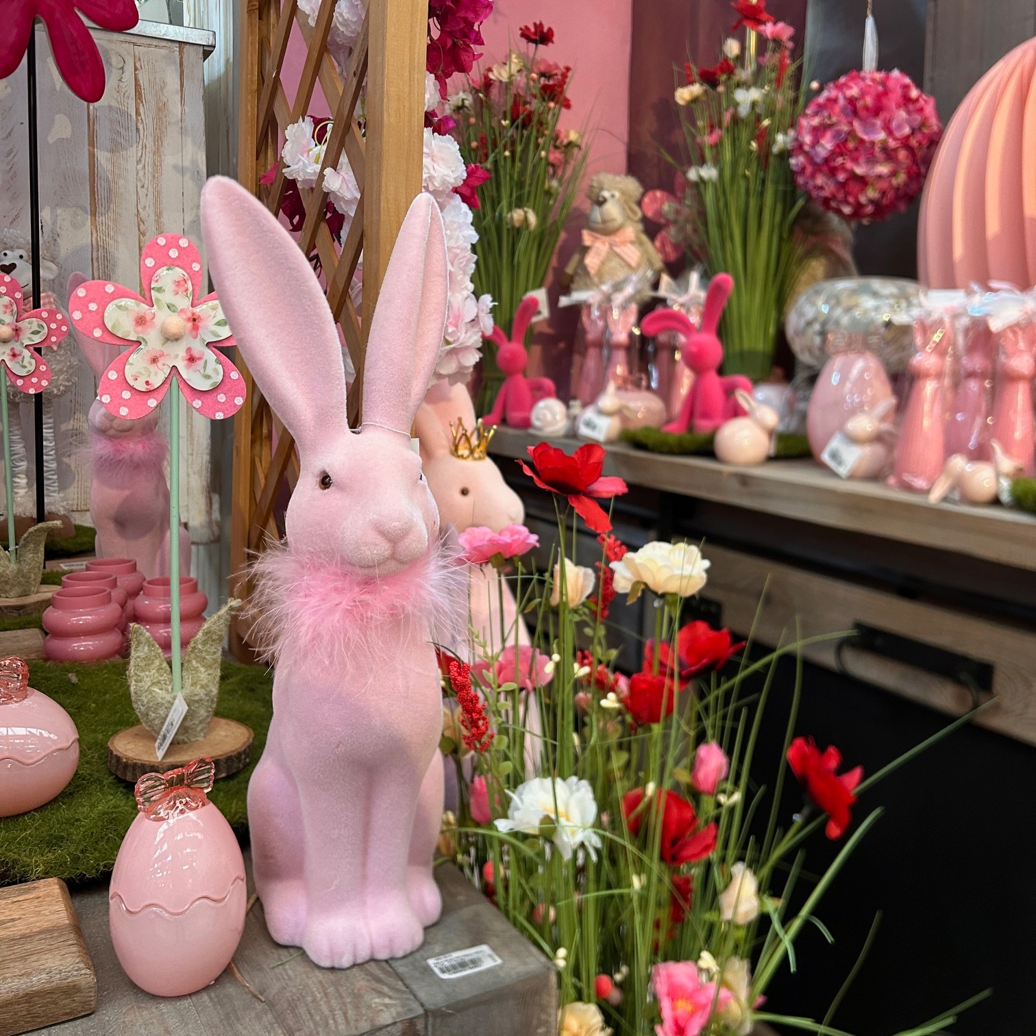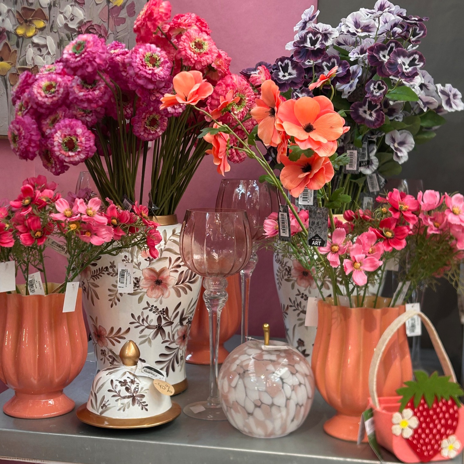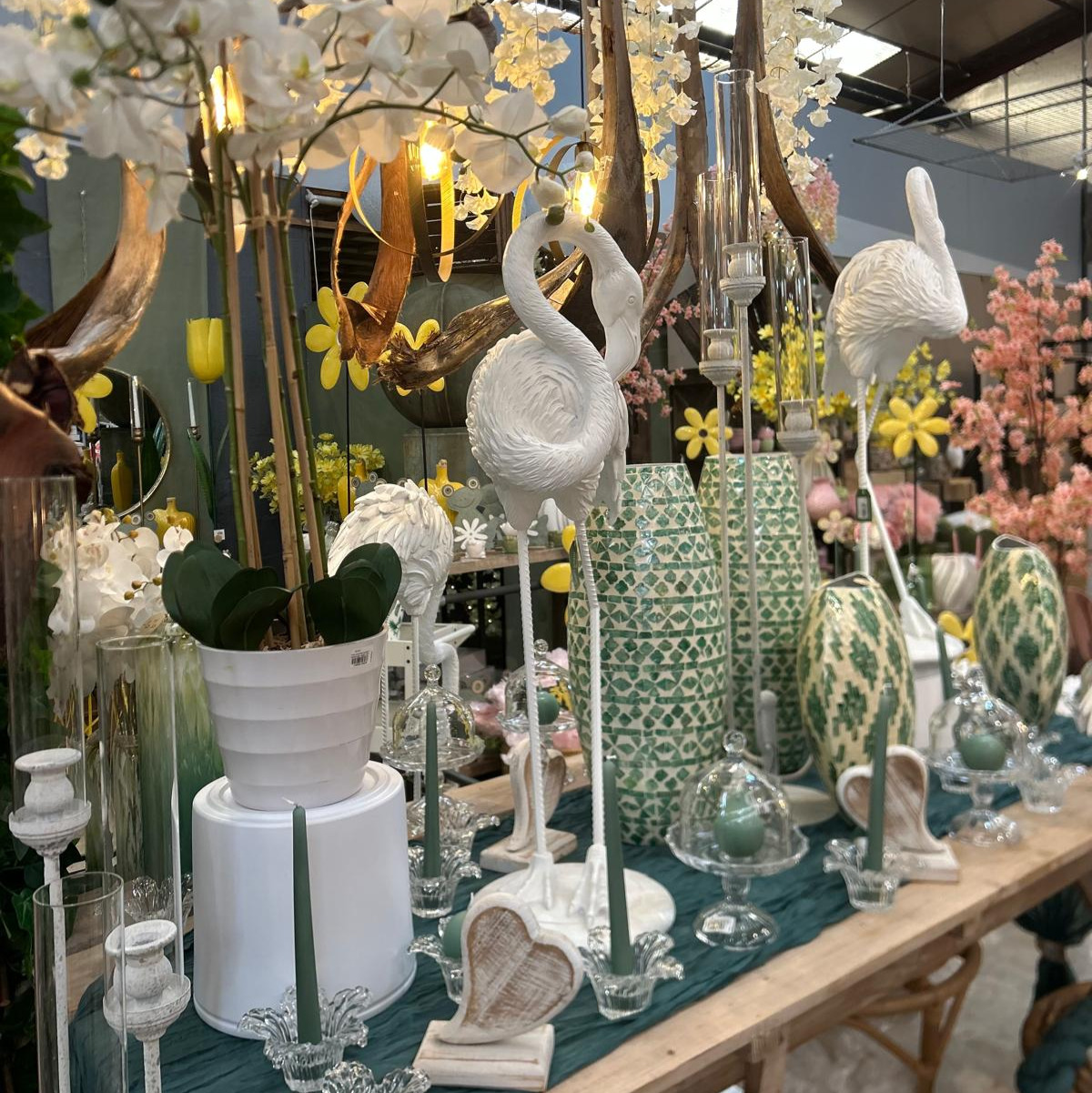 Aujourd’hui, notre offre mixe les produits essentiels (emballage, contenants, fleurs artificielles, accessoires,...), les décorations de vitrine, la décoration d’intérieur (luminaires, vases, art de la table, ...) et le mobilier de boutique. C’est près de 6000 produits que nous vous proposons tout au long de l’année.